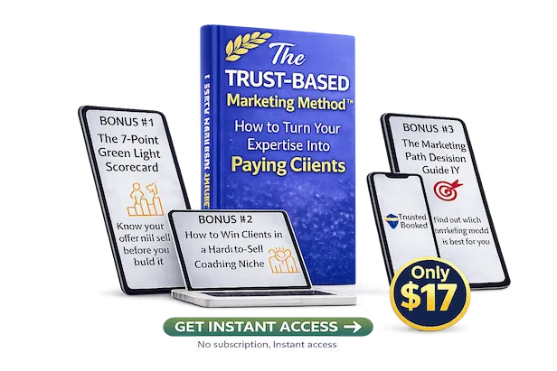 ✅ The Core Guide: The Trust-Based Marketing Method™ — The complete messaging and positioning framework, read in one sitting, applied immediately. No fluff, no filler.
