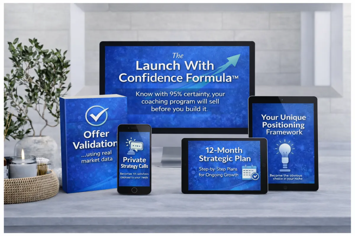 The Launch With Confidence Formula is a done-for-you market validation and strategic marketing system.
